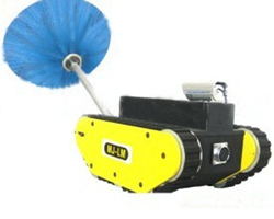 本機器人采用特殊專利的清掃方法:機器人在行進過程中,機械臂可上下左右360°任意調整,不留任何死角,通過特制的滾刷可一次性完成對風管頂面、底面和側面的抽打清掃,并針對不同高度的風管專門設計400mm-600mm,以及600mm-1000mm的曲柄定們裝置,極大的提高了清洗效率及潔凈度,是一款真正具有實戰能力的工業級清掃機器。